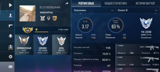 Звание: LegendКраткое описание: Привязка фейсбука вк,205 лвл, легенда 2364 ммр 10-9 сезона ,2 донатные медальки, хорошая статистика