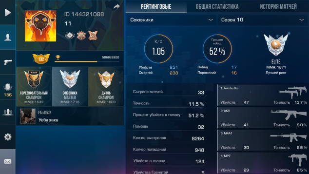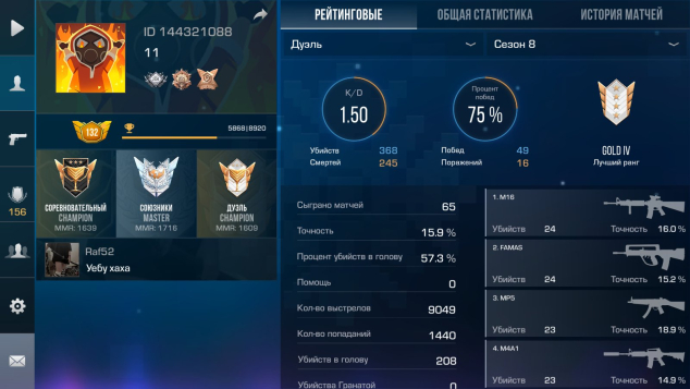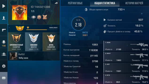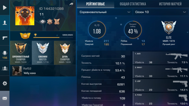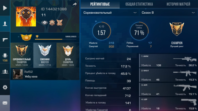 Подробное описание: основная привязка вк, акк давно утерянн, аккаунту стандофа год, игра стала скучная, по этому продаю аккаунт
