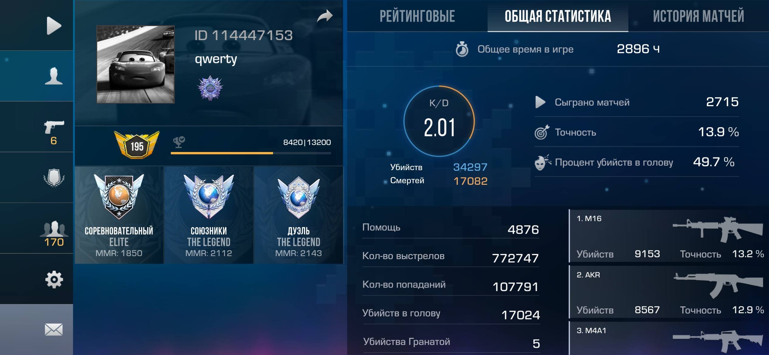 Звание: LegendКраткое описание: 💙200 LVL💙ТРИПЛ ЛЕГА 2КД+💙3 К ЧАСОВ💙АЙДИ 114447153💙ФУЛЛ СЕЗОНЫ ФЕНИКС-ЛЕГА💙