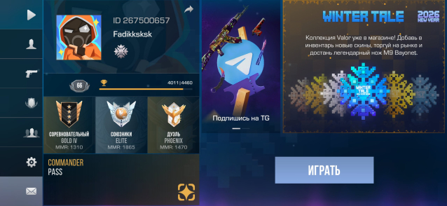 Звание: EliteКраткое описание: ЕСТЬ НОЖ❤️❤️❤️ЮСП ЗА ДОНАТ!🩷🩷🩷🩷