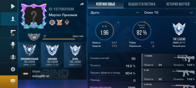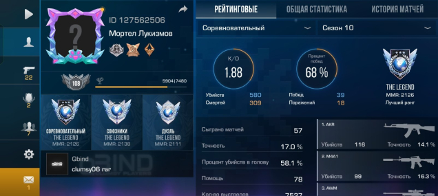 Звание: LegendКраткое описание: 🌎id 127562506🌎Трипл Легенда🌎Рамка Akari Legendary🌎Медаль Outcast silver🌎7 Медалей🌎Скрины в Описании🌎