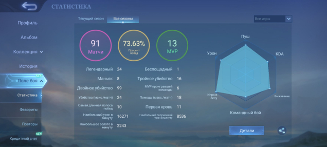 Процент побед: 73