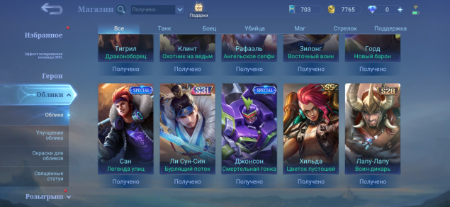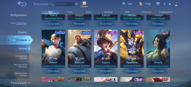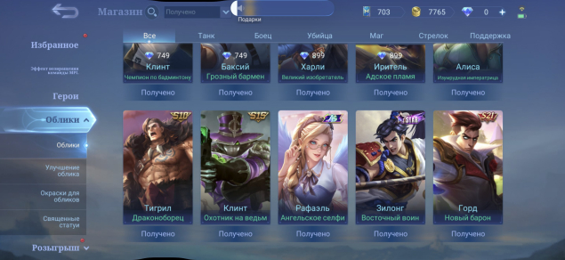 🎭 Облики на аккаунте (68):