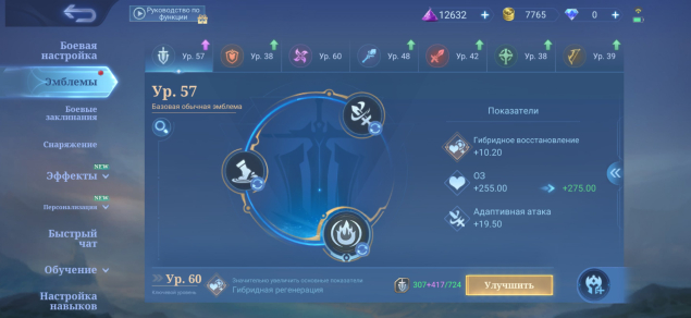 3. Эмблемы: 38–60 ур.