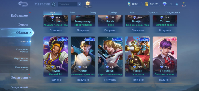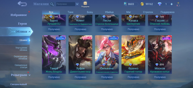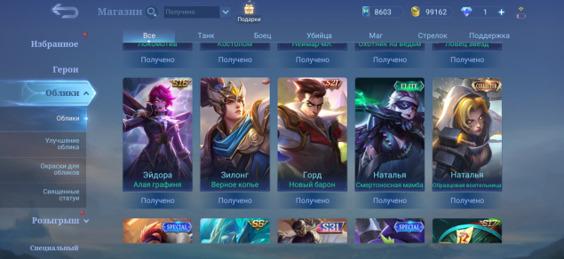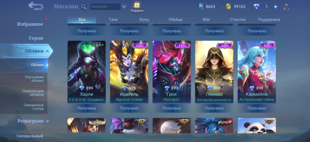 • Харли Epic• Иритель Epic• Грок Epic• Люнокс Epic• Кармилла Epic