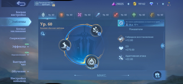 3️⃣ Эмблемы: все по 60 ур.