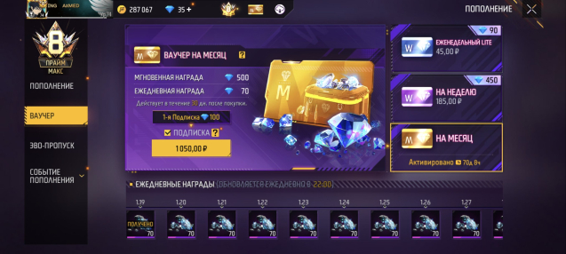 72 дня купленного месячного ваучера
