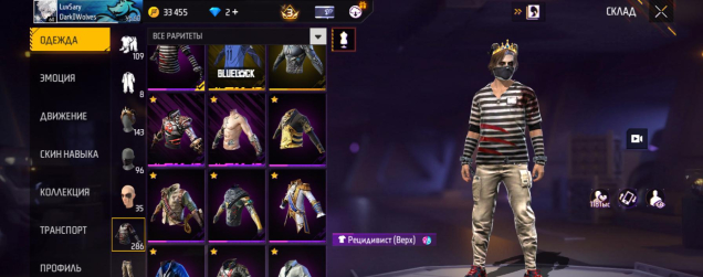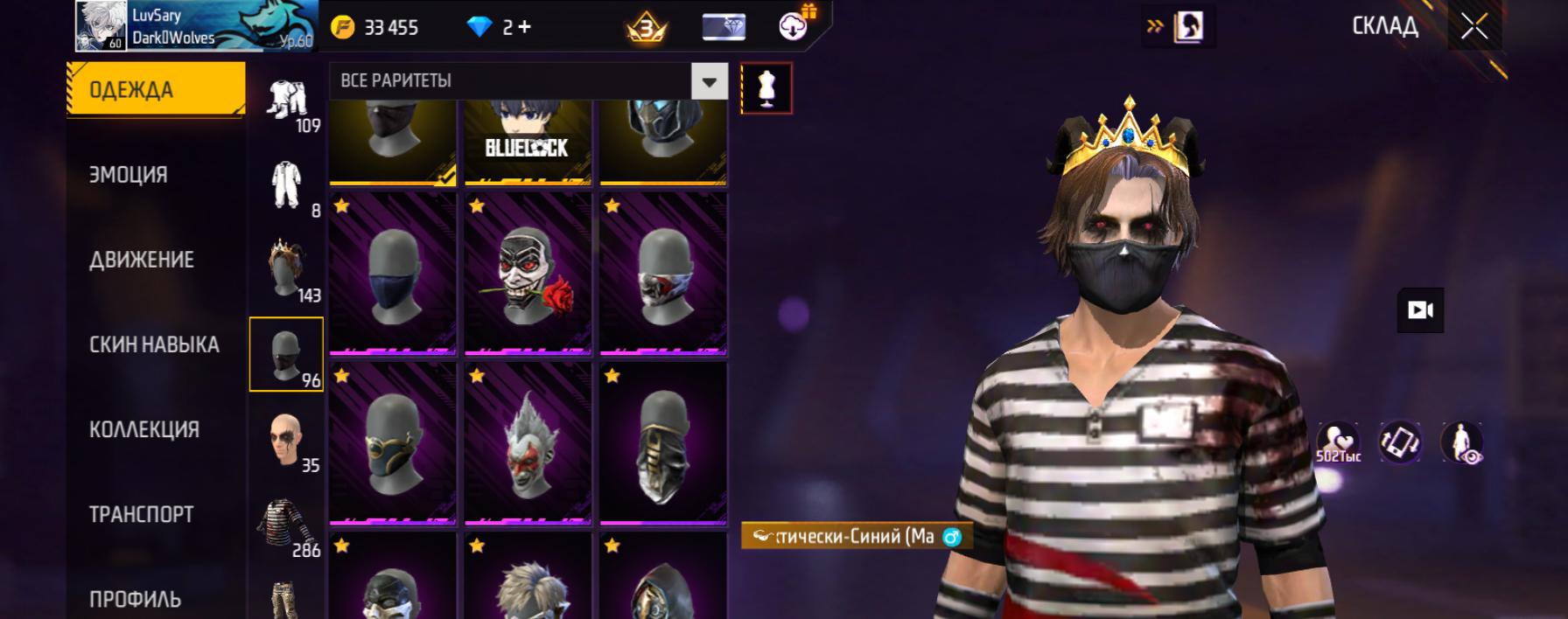 🔥 Продам аккаунт Free Fire — LuvSary (DarkWolves)