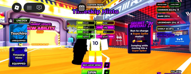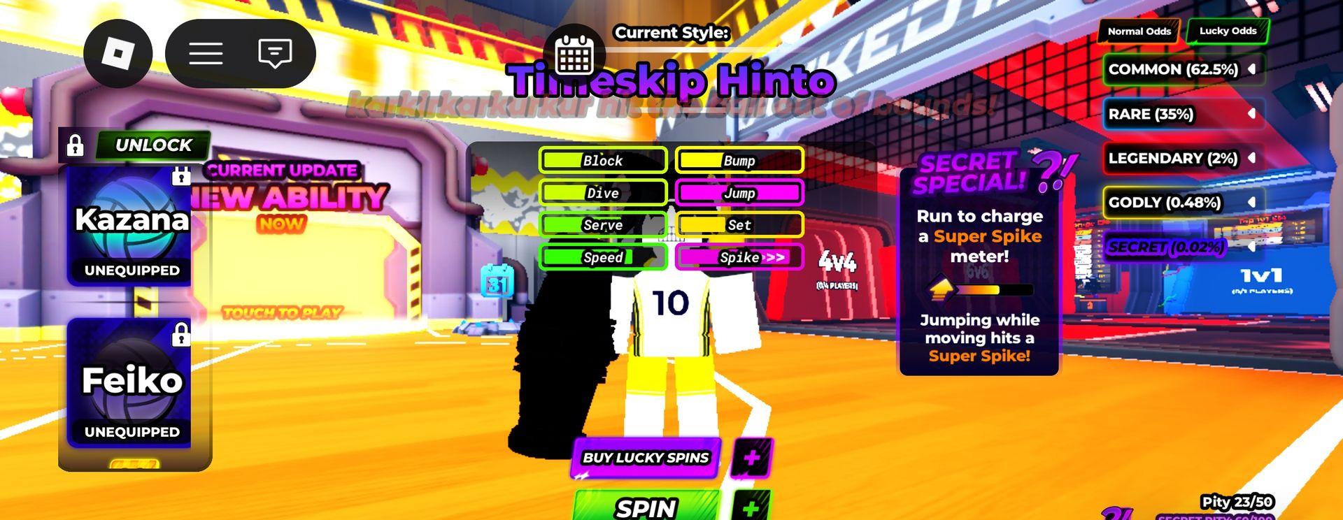 В volleyball legends куплен 4 слот за 149 робуксов, есть 3 секретки на фото но нету на фото абилки это magnatic pull, а также 100+ лвл
