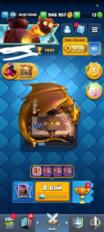 Сила (к): 7093Краткое описание: 💚ОЛД-АККАУНТ💚 7150 кубков💚 19 арена💚 очень много крутых эмоций💚 все башни💚117 карт💚 все легендарки
