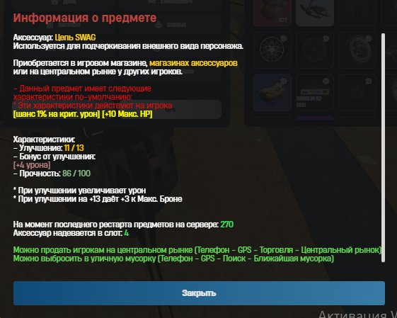 Сервер: Rodina-RP.com Южный округТип предмета: Аксессуары