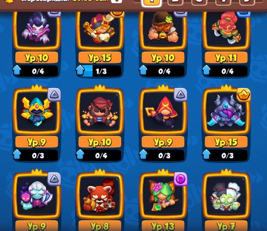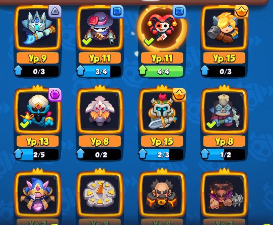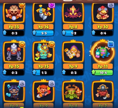 🔷15 Бард + 2 копии 🔷15 Утиль 🔷15 Статуя +2 копии 🔷15 ДХ 🔷15 Инк 🔷15 Монах +1 копия 🔷15 Робот +2 копии 🔷11 стрелок +3 копии 🔷13 Дриада+5 копий 🔷11 Арлик +4 копии 🔷13 Джин +6 копий 🔷14 мечи +5 копий 🔷11 призыв + 10 копий 🔷9 сетка +7 копий.
