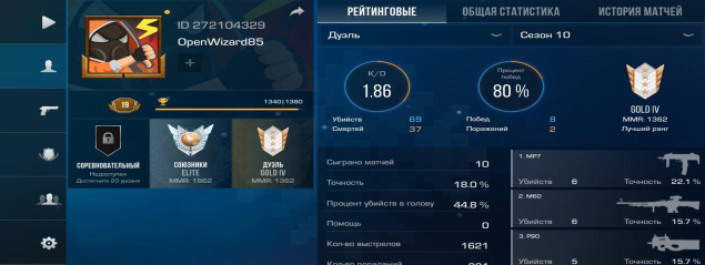 Дуэли — Gold 4 ( 1362 mmr), лучшее звание ✨