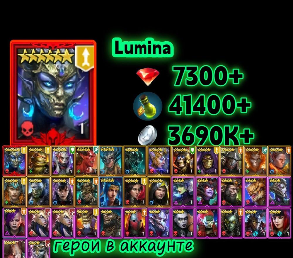 ⚡️ ПОЛНЫЙ ДОСТУП ⚡️ Lumina ⚡️ 7300+ Рубинов ⚡️ 41400+ Сила ⚡️ СМОТРИТЕ ОПИСАНИЕ ⚡️Эпических героев: 21