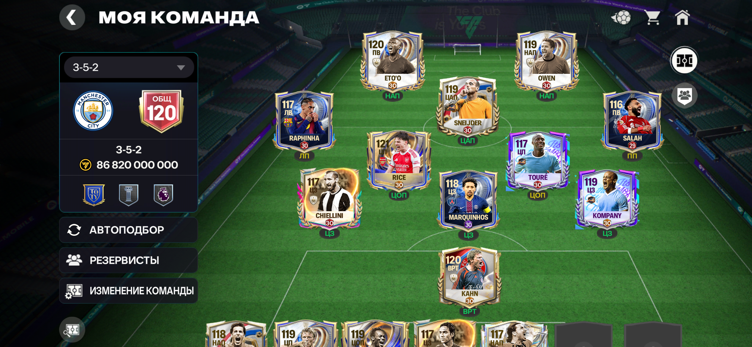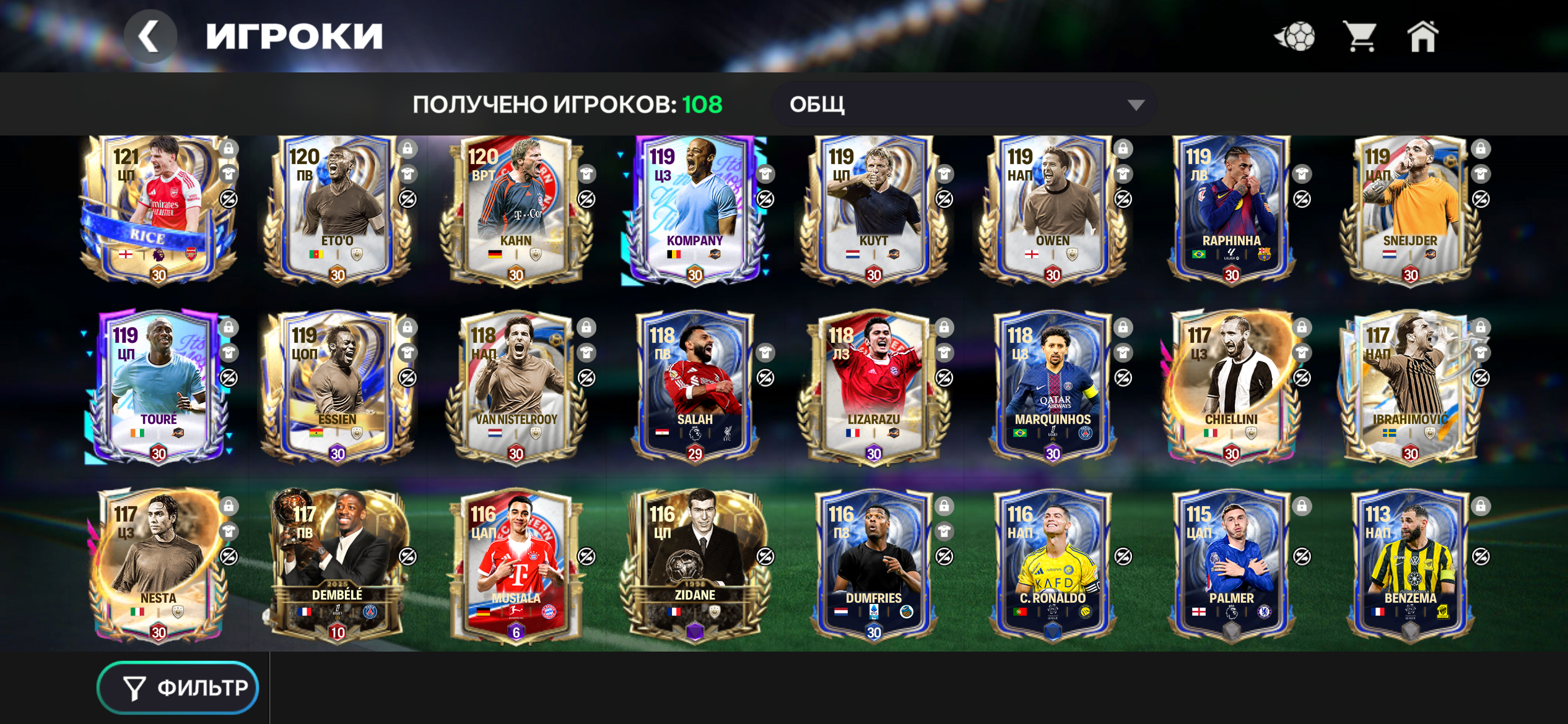 Продам жирный аккаунт Fifa Mobile,120овр, куча хороших игроков, райс 121, туре 119, кан 120, это о 120, овен 119