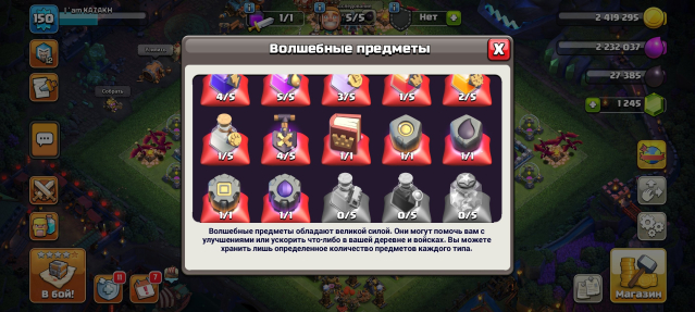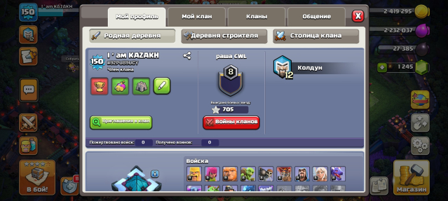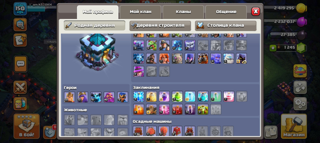 Уровень Ратуши: 13Краткое описание: ПЕРЕПРИВЯЗКА💎150LVL💎13ТХ💎5РАБОВ💎2 ЭПИК СНАРЯГИ+ДОНАТ ОФОРМА💎ГЕРОИ 60/61/41/40/8💎1245ГЕМОВ💎СКРИНЫ💎