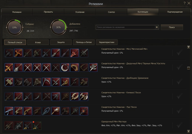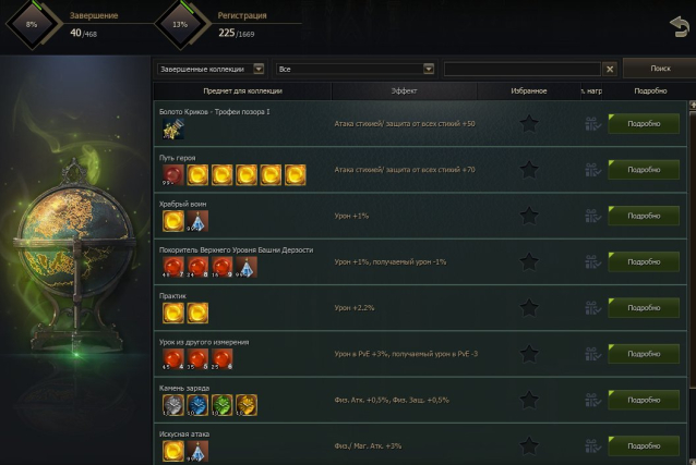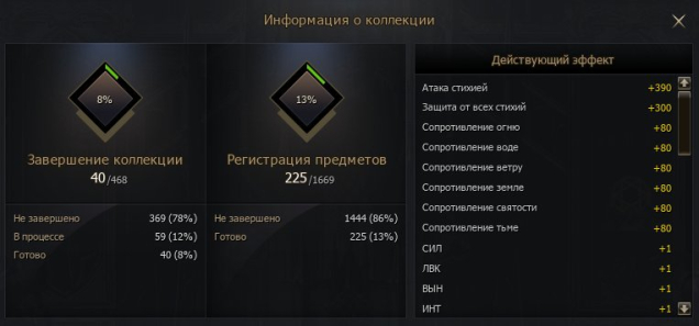 Коллекции изучено 40шт(8%) в том числе все платные на атрибут — 390 атаки, 380 защиты