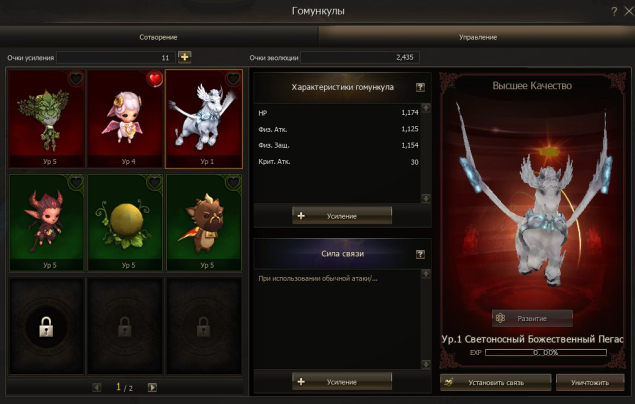 Красных гомункулов 3шт Нимфа 5лвл, Ангел 4лвл, Пегас 1лвл и 3шт зеленых — Дьяволенок 5, Фофо 5 и Корова 5 со всеми макс связями.