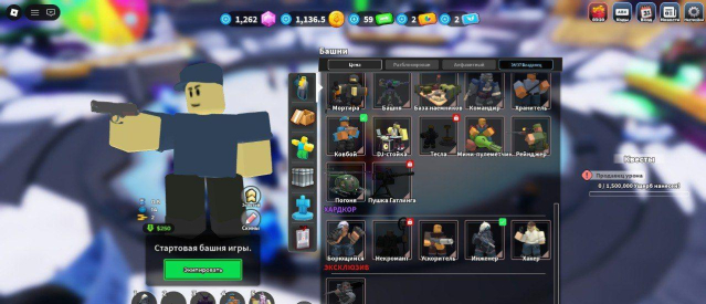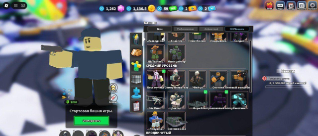 Товер дефенс симулятор, есть все башни, кроме гатлинга и некромансера, есть вип для х2 денег после каьки и т.д.