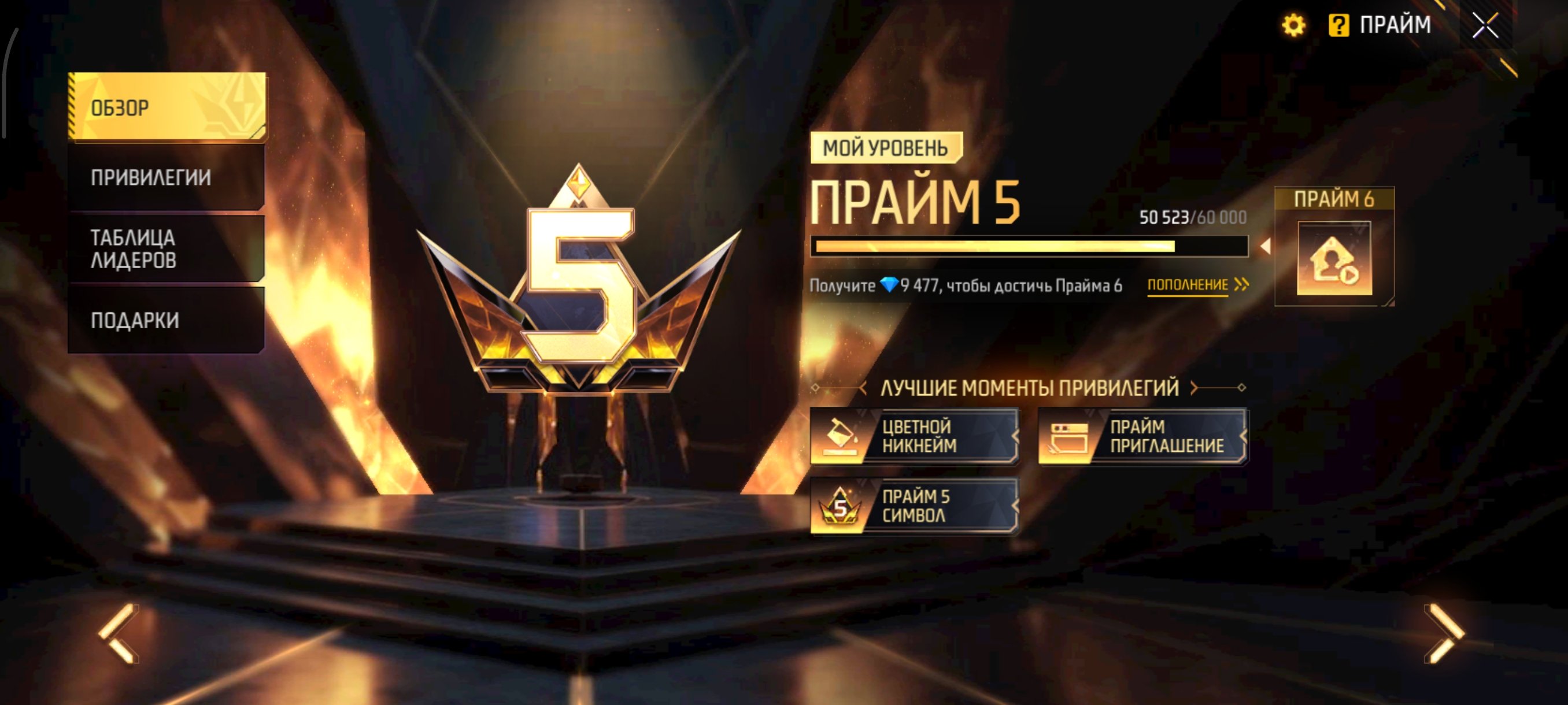 💎 Прайм 5+ – цветной ник, эксклюзивные бонусы, награды, статус элиты – сразу видно, что акк не новичковый