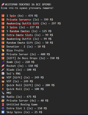 💼 Примерная стоимость инвентаря: 6927 Robux
