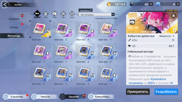 На аккаунте есть SSR герои САЛИДИ С2 + 1 МАТРИЦА, ШИРО С3, МЕРИЛ С1, ЗЕРО С1, САМИР С1, КРОУ, ЮМА