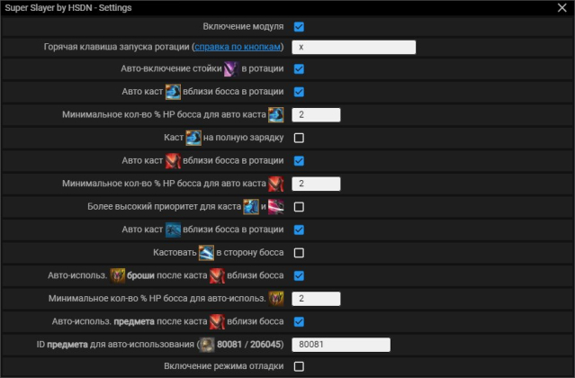 Полный быстрой каст для убийцы с удобной панелью управления и дальнейшим авто-обновлением. Модуль быстро выдает всю ротацию с высокими хпмами пока вы удерживаете одну кнопку. Модуль быстро анализирует и подстраивается под ваш пинг на любом поддерживаемом сервере и не требует какой-либо настройки.