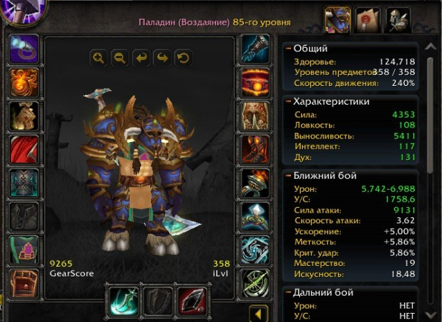 Краткое описание: Оружие Зин-Рок. Паладин 85 лвл ретрик 358 ilvl ПВЕ, фейк фио, УКР акк