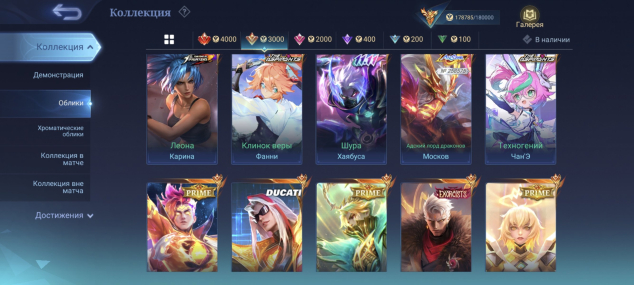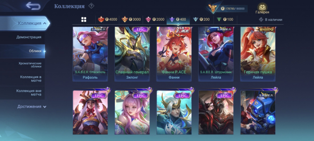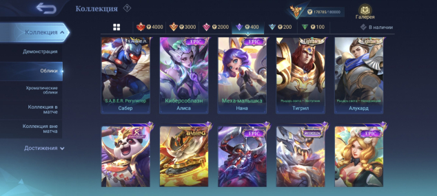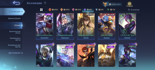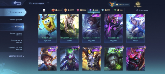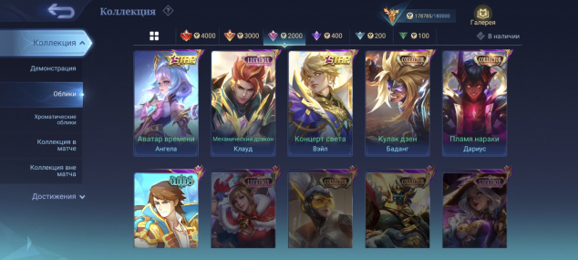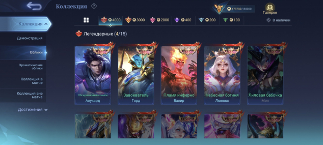 481 скин: Легендарные 4, изящные 11, изысканные 16, роскошные 63, исключительные 125, обычные 218