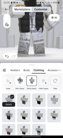 Подробное описание: 85 робуксов 4 майки 4 штанов