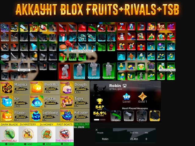 Краткое описание: 🌈🌊СКИНЫ В RIVALS🌈🌊20K+ TOTAL🌈🌊TSB 22K+ KILLS🌈🌊PERM KITSUNE TIGER DOUGH LIGHTNING PORTAL BUDDHA🌈🌊