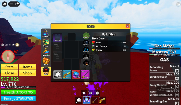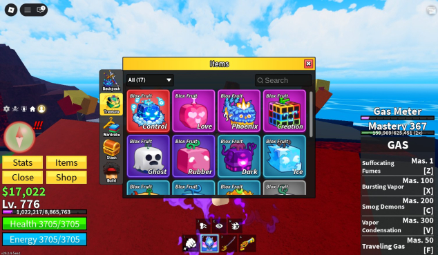 ㅤ ○ Blox fruits: 776 уровень, Перм будда, перм dough, перм газ, 2x мастерство, Съеден газ в инвентаре есть контроль