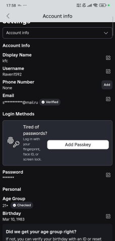Регион аккаунта: Россия