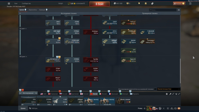 Фулл вкачана советская и китайская ветка танков (Кроме пво)
