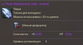 Подробное описание: +5 Перо Маркутана (маг. атака).