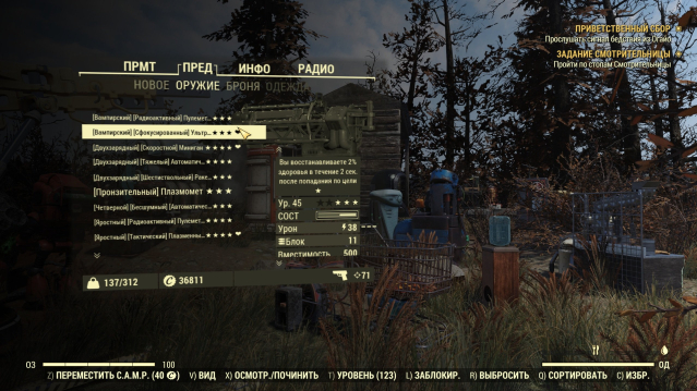 364 уровень (планировался в дальнейшем под гуля), набор оружия, ультрацитовая броня секретной службы с реактивным ранцем