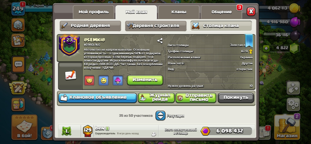 Краткое описание: Название @SEMKI@ Тег: #G9RGL9LG ЗОЛОТАЯ лига II