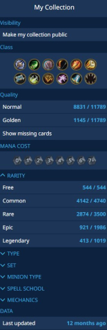 Кол-во легендарных карт: 413