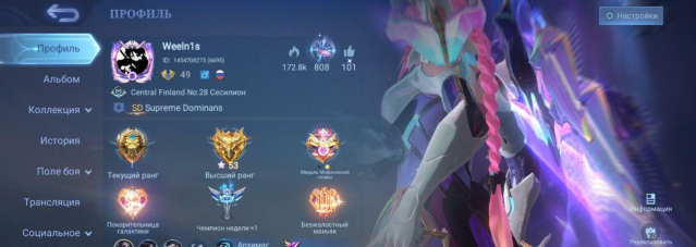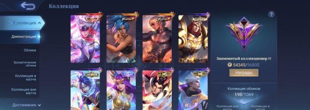 На аккаунте знаменитый коллекционер 4. Коф гусь с кариной. Легенд на фрейе. Скины м5 м6 чонг и клауд, а также чемпион на чу а также зодиак на Хильду и Одетту. Валентин скины также имеются