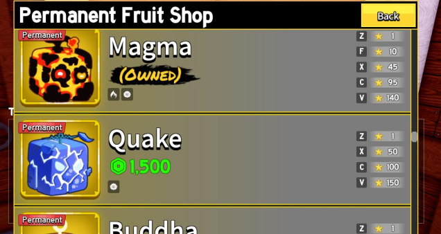 1 на аккаунте пресуствуют перманент фрукты (rocket spin magma buddha portal t-rex dough kistune dragon) геймпасы присуствуют обсолютно все есть 4 места для фруктов тоесть было докуплено 3 места есть очень много мечей и ганов (почти все вообщем не хватает совсем мало все самое лучшее есть) многое прокачено по много мастери почти все вещи со всеми способностями а по фруктам все которые перманент со всеми способностями и также тесто будда (в2)
