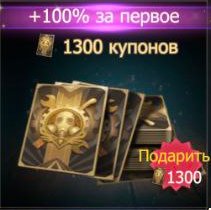 Количество купонов: 1300Способ пополнения: С заходом на аккаунт