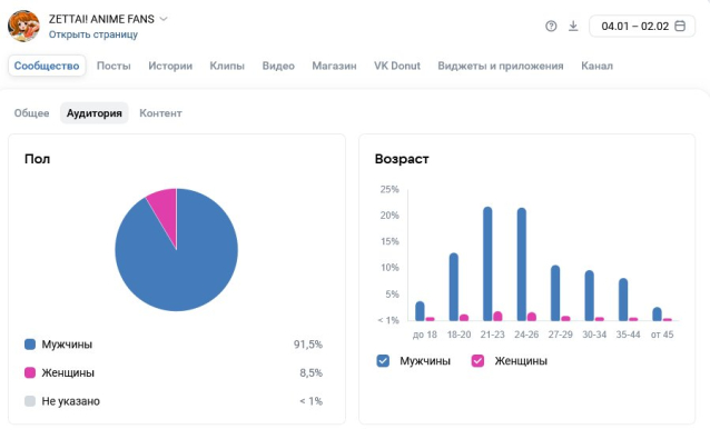 Мужская активная аудитория 18-45 лет. Тематика аниме.