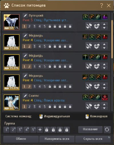 Петы разные, ориентированы на фарм, ремесло, масс пвп.