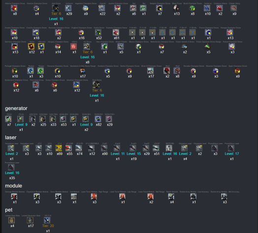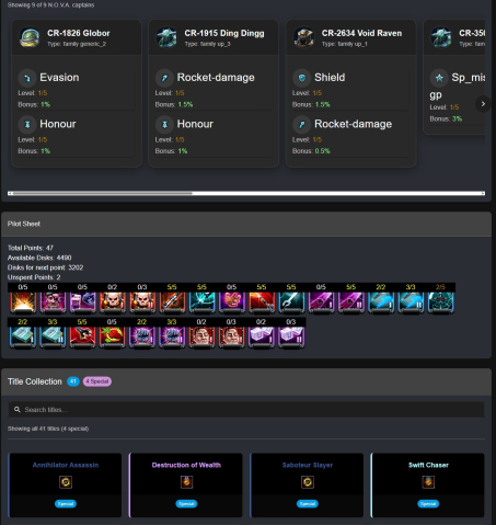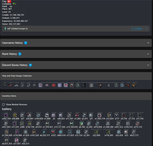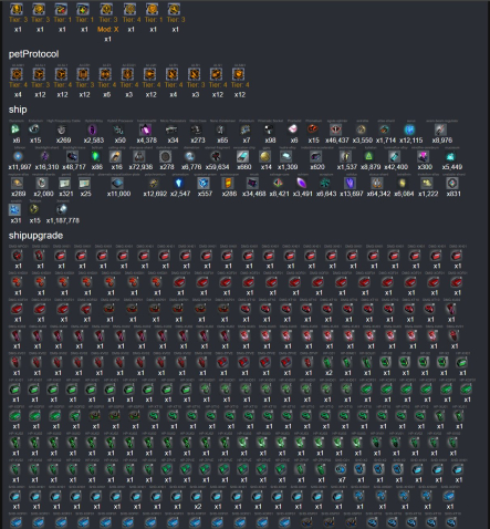 | 19/100 and 11/60 missions| not for bot, 370 mods for ships, most of them not restabilized| A on base| TR (50% cheaper prices in store) payment flag