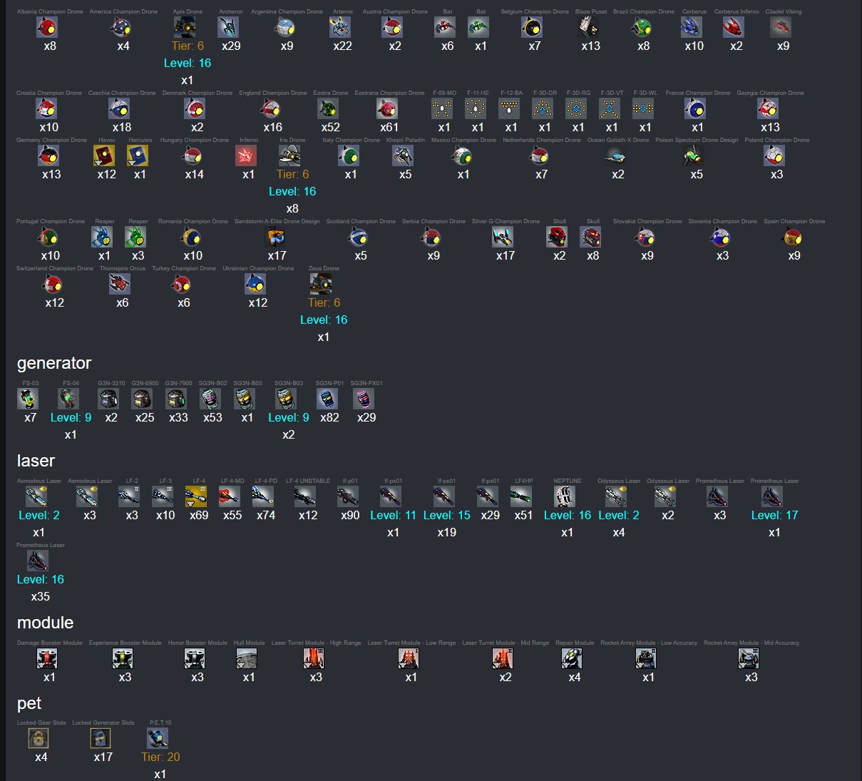 Подробное описание: Global Europe 3 — rings| 50pp| VRU| 24 lvl(42b)| 5 000 000 URI| 51b credits| 10 drones(16)| 10 Havoc| 10 Cerberus| 1fs_04 + 3 bo3| 22 px01 | 36 Prometheus(16)| 19 lf_px01 (15)| 4 Asmodeus| 6 Odysseus| Neptune(16)| Pet protocols:63(4)|