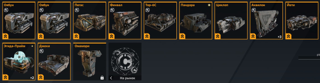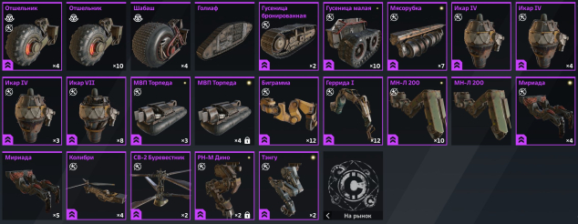 Более сотни ап легендарок на складе, вместе с кабинами (нужные апы кабин и под ховеры и под колеса, и под тяжей).