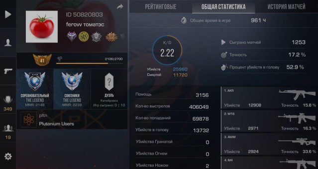 Всю статистику вы можете увидеть на скриншотах, так же можете сами посмотреть по айди в игре.