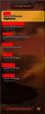 На аккаунте имеются несколько персонажей в SOD Living Flame Horde:
