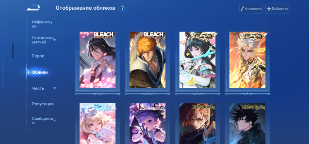 ●Блич — ✅️фулл,●Санрио — ✅️фулл, ●Манга — Да Цяо, ●Магическая битва — все, кроме Бирона, ●Детектив Конан — ✅️фулл. ♥️Так же много косметики из магазинов коллаб, рамки, тп, эффекты убийства и прочее.