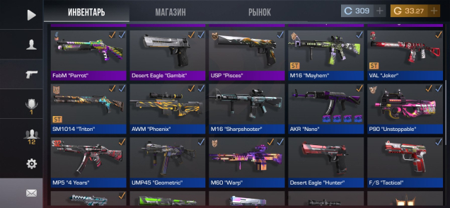 и инвентарь скинов